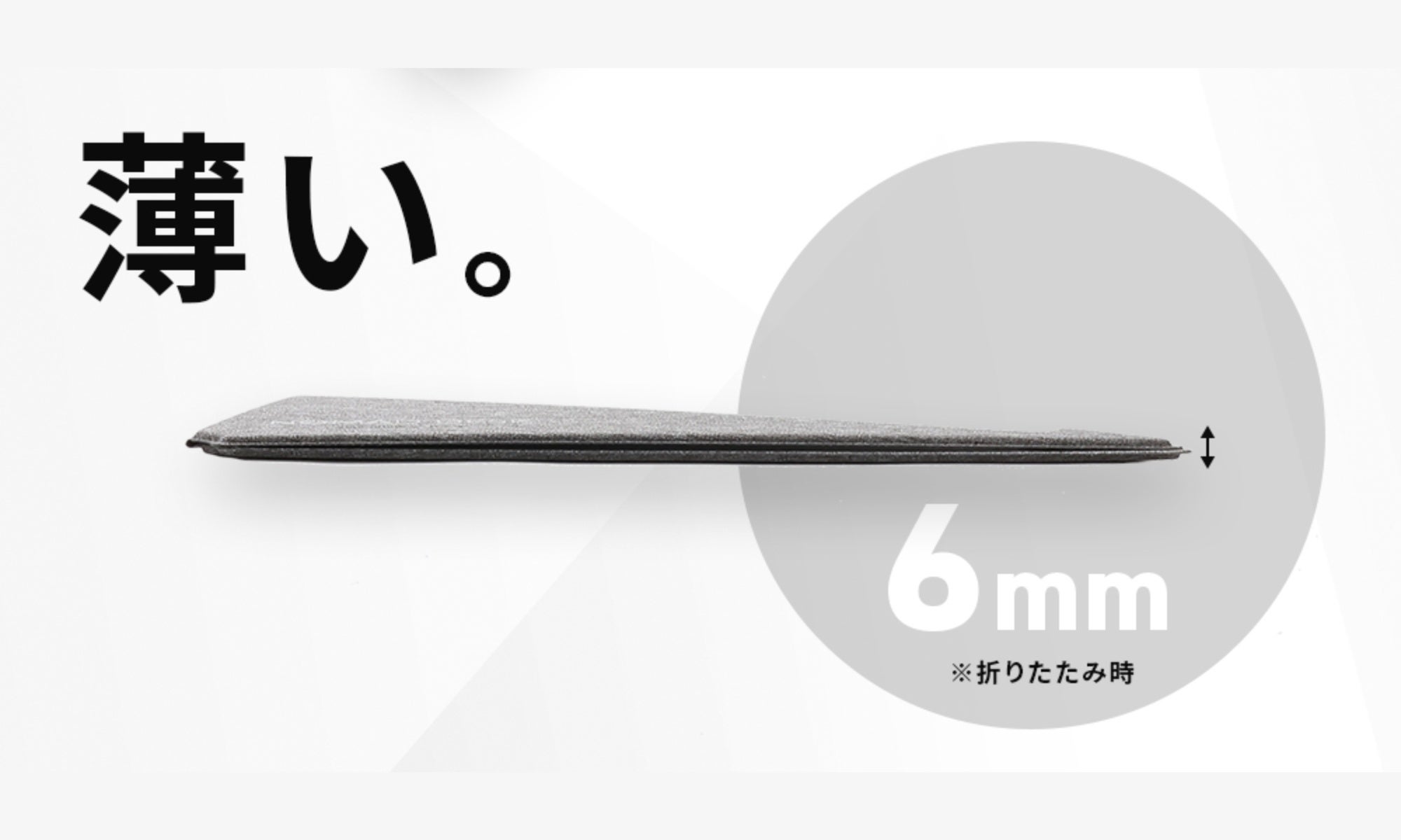 重さ100g、厚み6mmの軽量・コンパクトな仕様はノートパソコンケースの隙間にもらくらくフィット。
