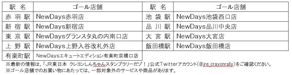 〇スタンプラリー開催期間中、首都圏の一部駅構内でのPOP UP SHOPやゴール店舗のNewDaysにてクレヨンしんちゃんグッズを販売します。