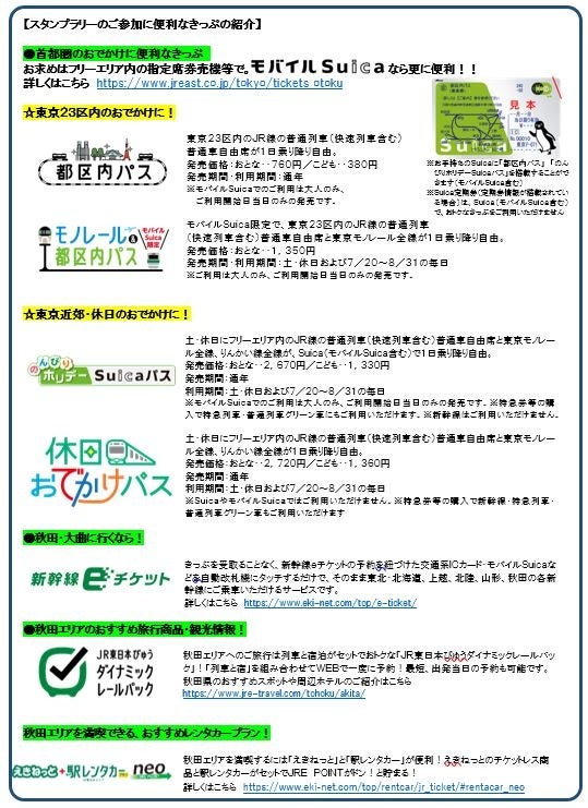 【スタンプラリーのご参加に便利なきっぷの紹介】