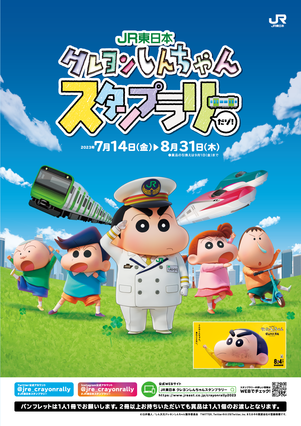 〇JR東日本では、2023年8月4日(金)より公開する映画「しん次元!クレヨンしんちゃんTHE MOVIE 超能力大決戦~とべとべ手巻き寿司~」とタイアップし、「JR東日本 クレヨンしんちゃんスタンプラリーだゾ!」を初めて開催します。