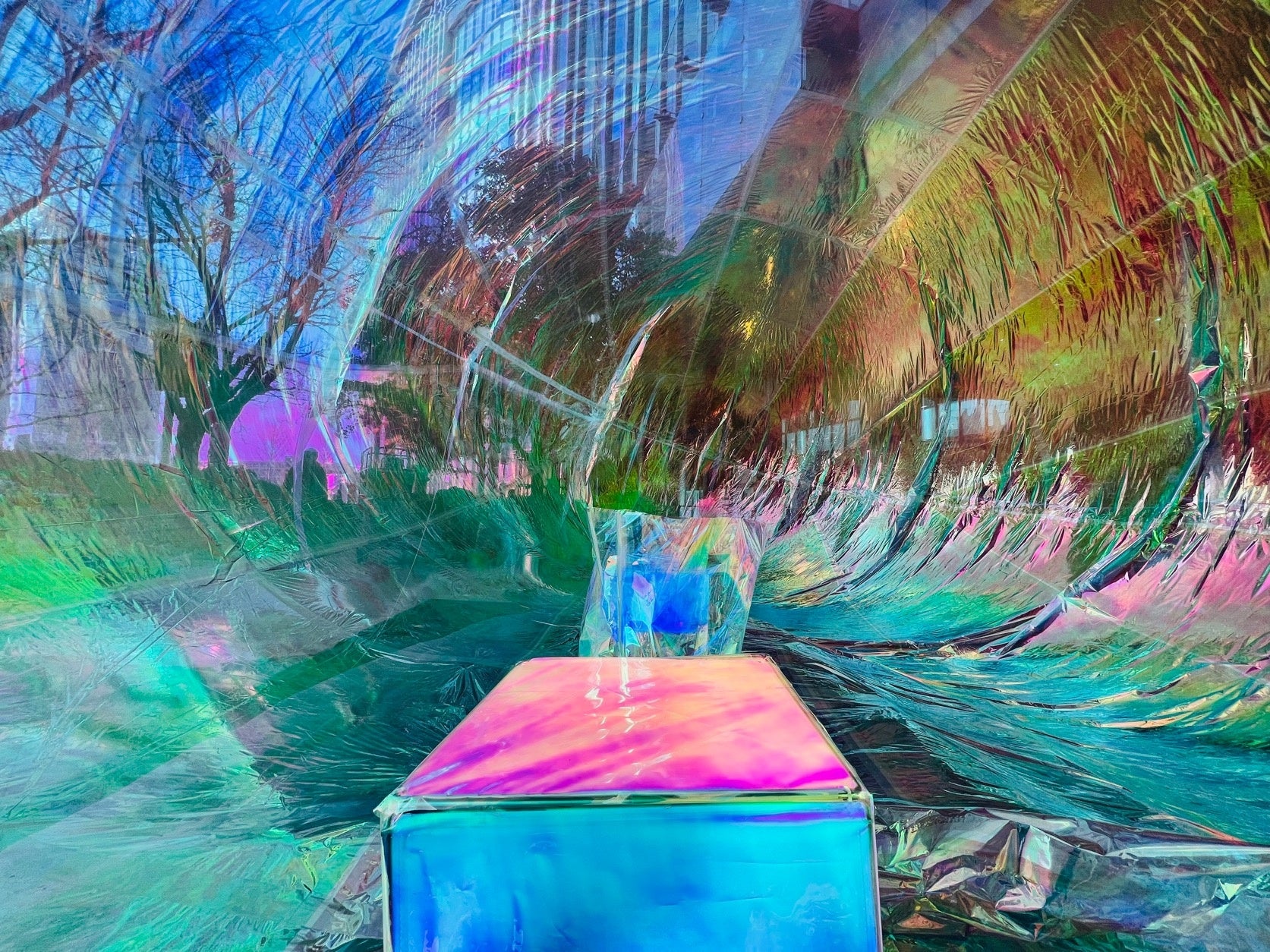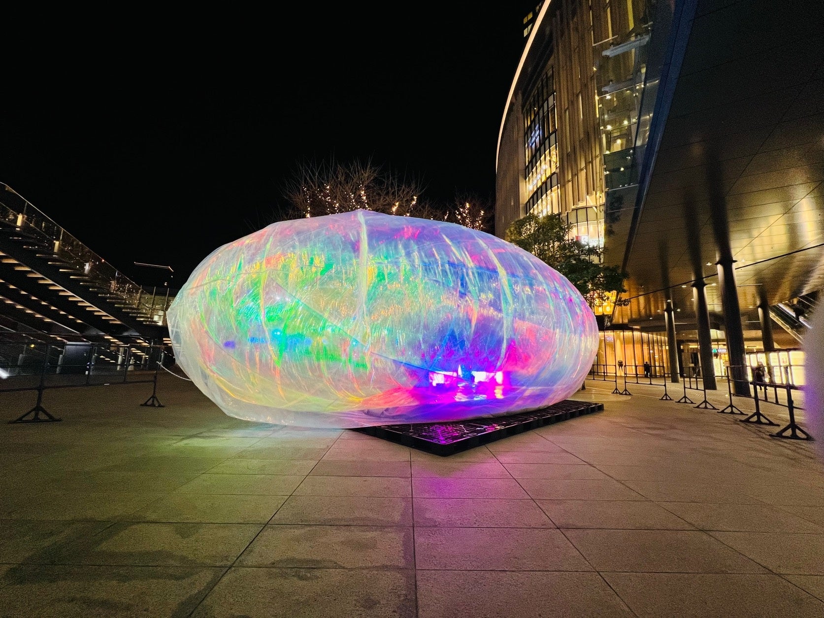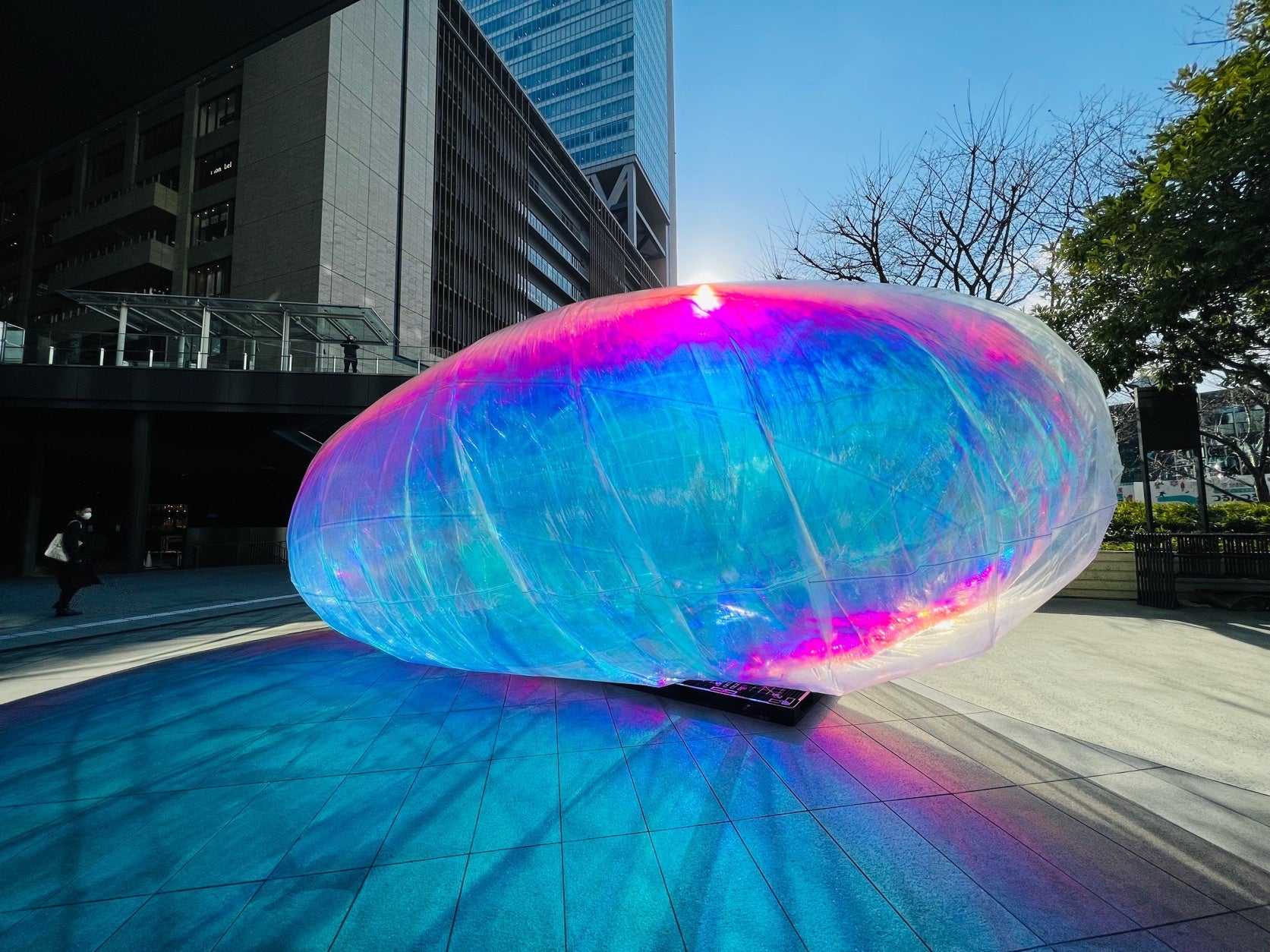 ■概要:奥中章人 体感アート作品展「INTER-WORLD/SPHERE: Cocooner」 空気と水と光のアート作品の展示および体験会。大気の力に触れて、水の上に浮かび、極光に包まれます。