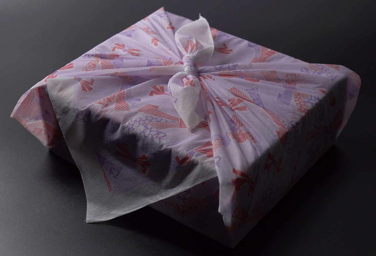 高級不織布“のしめ柄”の縁起の良い風呂敷でお包みしています。