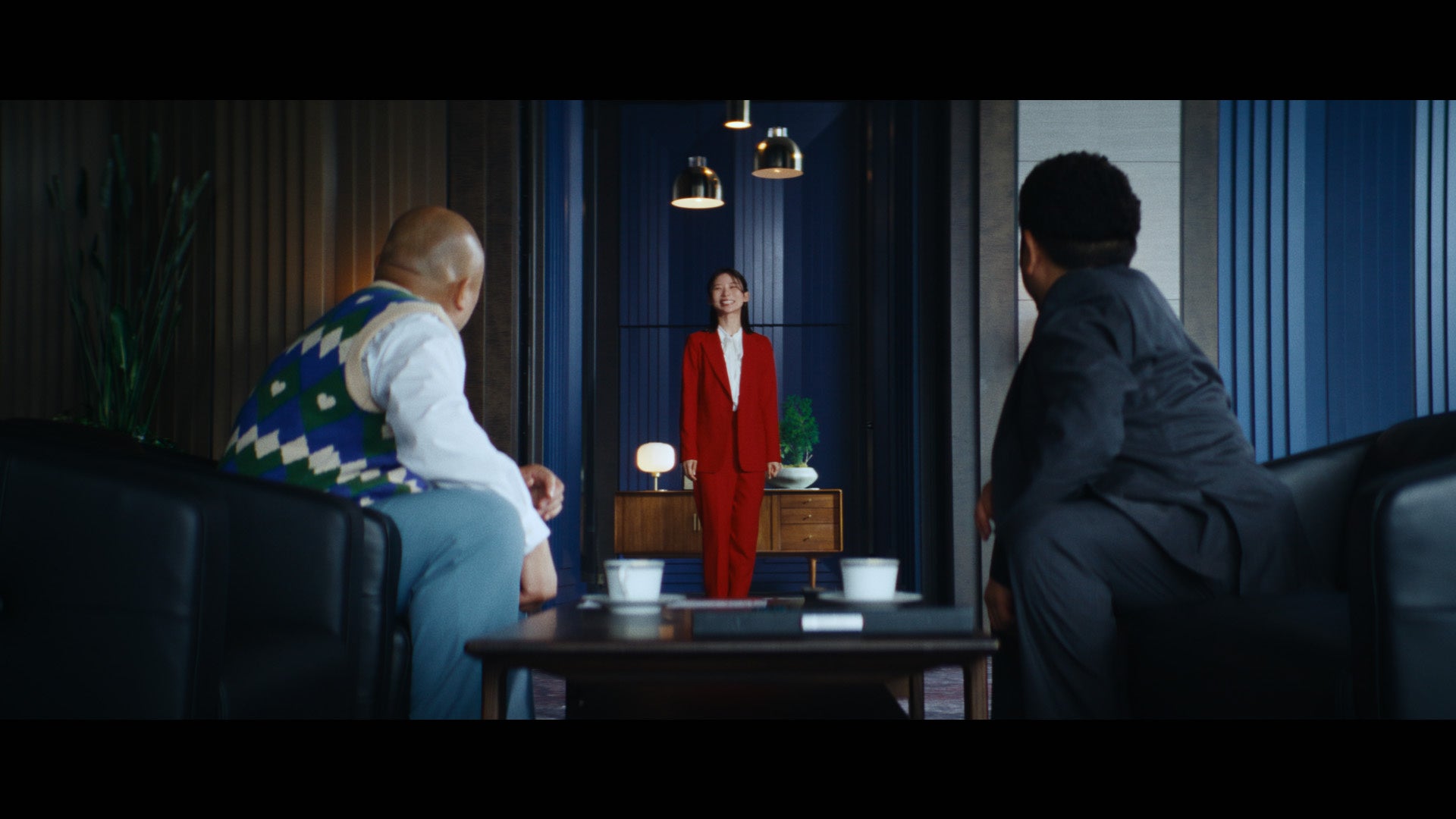 新CM『クルマドンナVSクルマダンナ』篇の舞台は、高層ビルが立ち並ぶ都心の某会議室。「おたくのクルマ、買うぜ。」と怪しい笑顔を浮かべながらお客と思しき男性に詰め寄るクルマダンナ(金ちゃんさん)と不安そうな表情をした男性(坂井さん)。そこに「ちょっと待って!」と朝日奈央さん演じるクルマドンナが颯爽と登場します。「カーネクストが、買うわ!」と高らかに宣言し、古い車や動かない車等どんな車でも高価買取というサービスの特徴を紹介。クルマドンナの登場により、それまで不安そうだった男性の表情が喜びの笑顔に変わる瞬間にも注目です。