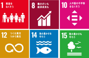 「ココナッツ廃棄量を減らし水質汚染の軽減につながる」「動物を傷つけずレザーを楽しめる」「原料も染料も天然素材のため、製作過程でも環境負荷が少ない」など社会課題解決につながり、下記SDGsに貢献します。