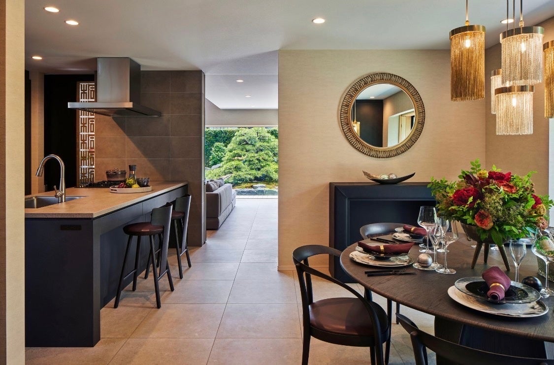 最難関と言われる「インテリア・デザイン・スキーム グローバル部門」は、私たちにとって大いなる挑戦でした。入賞できただけでも非常に名誉なことですが、まさか最優秀賞に選んでくださるとは、本当に夢のようです。この邸宅は、クライアントの人生や生きざまを建築やインテリアに反映し、日本ではまだ珍しいマンケイブ(「男の社交場」的な空間)を有しています。また、代々受け継がれる日本庭園や蔵を望むリビングダイニングは、日本の伝統工芸や技術、そして西洋のエレメンツが融合された美しい空間です。応援してくださいました皆様に、心から御礼申し上げます。
