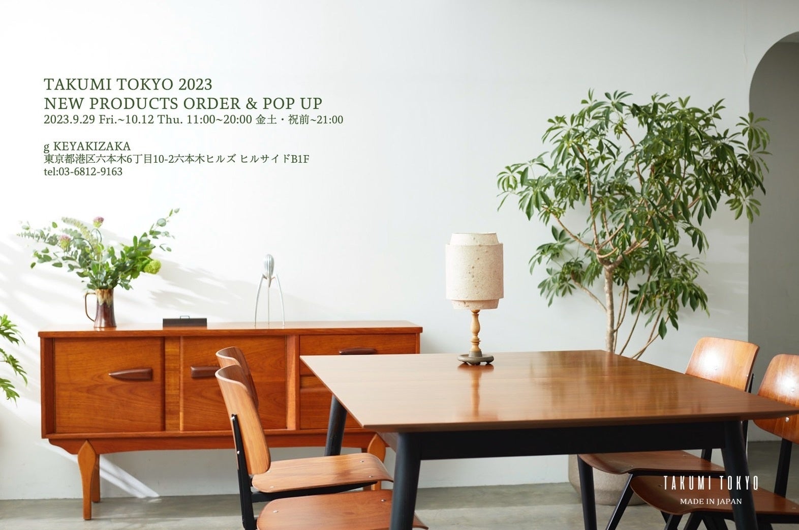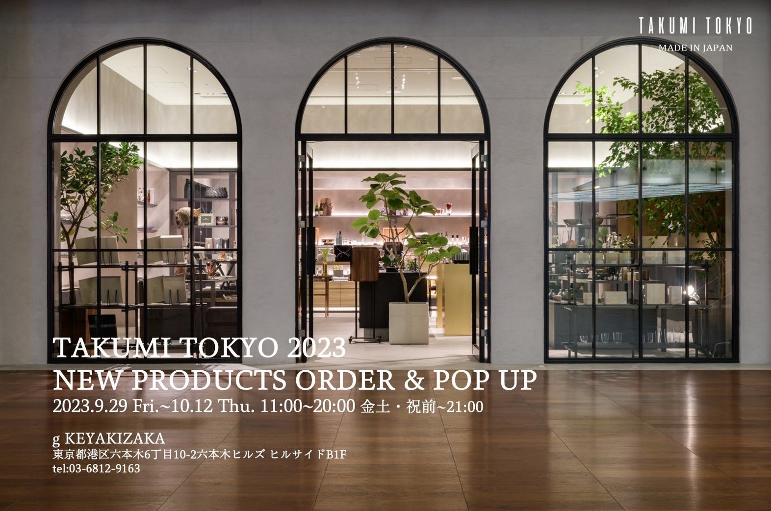 この度、弊社はg keyakizakaにて9月29日(金)~10月12日(木)にTAKUMI TOKYO 2023