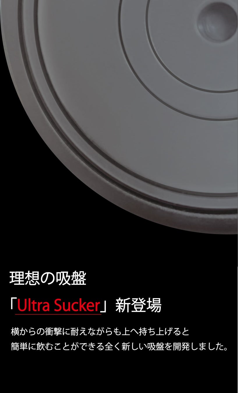 そして時を超えて2023年、試作に試作を重ねてようやく、横からの衝撃に耐えながらも上へ持ち上げると簡単に飲むことができる理想の吸盤「Ultra Sucker」を開発しました。