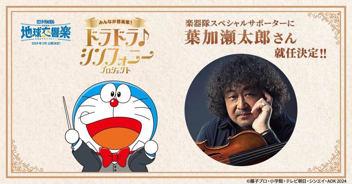 『映画ドラえもん のび太の地球交響楽』公開記念 楽器隊を応援するスペシャルサポーターに葉加瀬太郎さんが就任!『ドラドラ♪シンフォニープロジェクト』追加情報