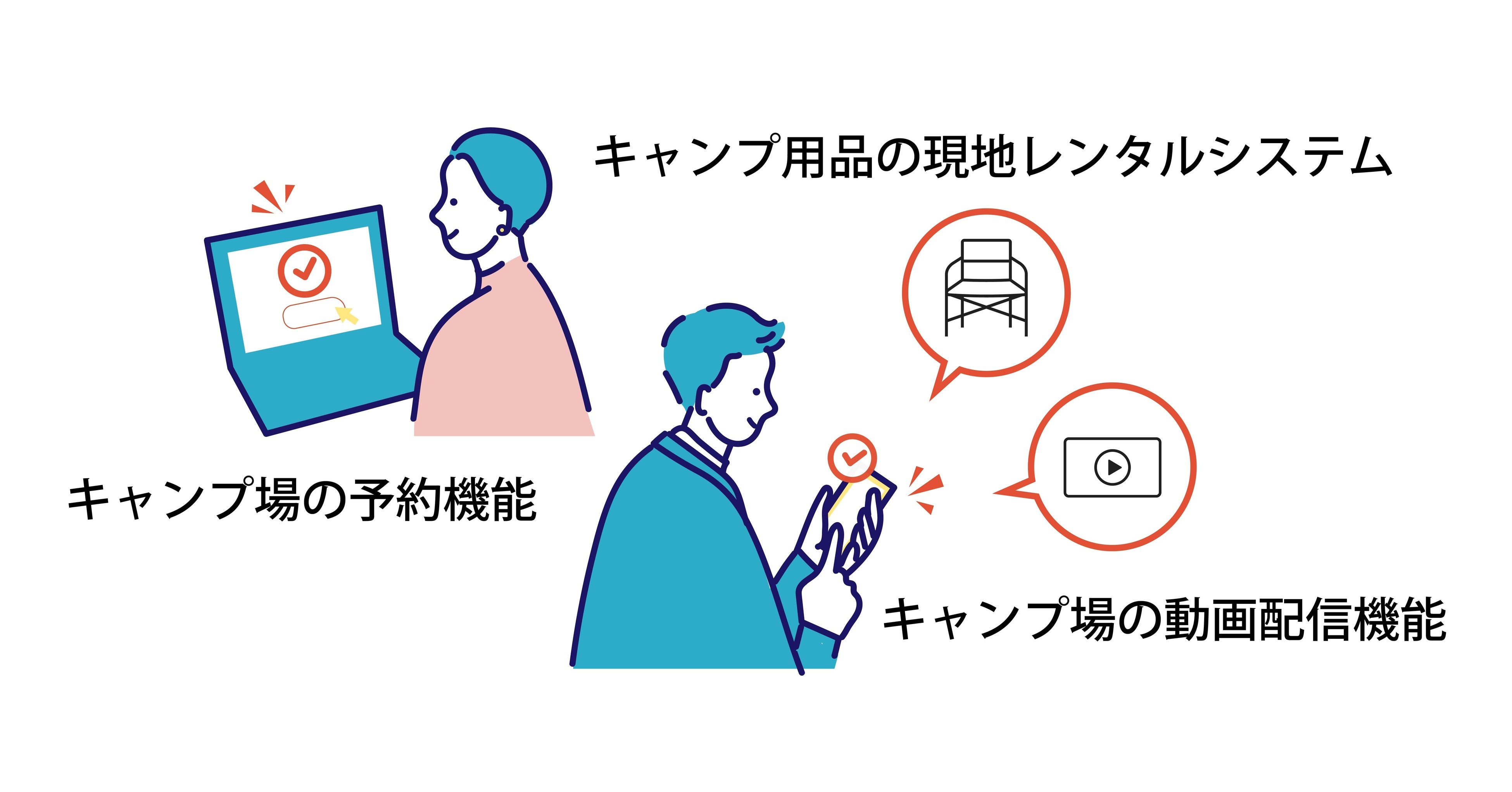 提携したキャンプ場様に、最小限の手間で、キャンプ用品の現地レンタルが実現できるシステムを提供する予定です。