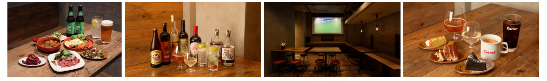 会話や食を楽しんでいただくだけでなく、ワーカーさんにもご利用いただける半個室もあり、プロジェクターもあるのでスポーツ観戦や貸切イベントなど、さまざまなイベントに対応が可能です。