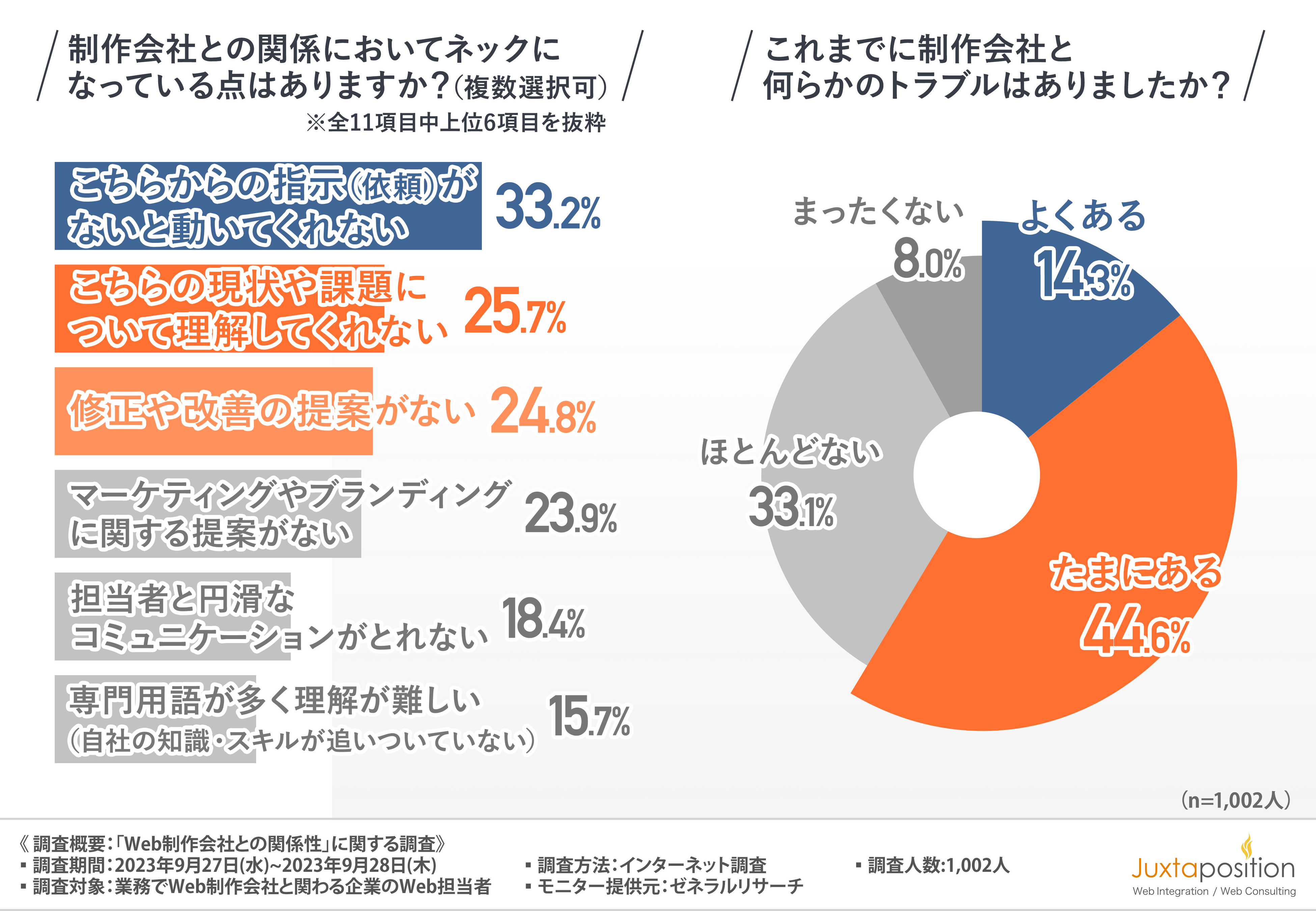 今回の調査で、Web制作会社との付き合い方に関する実態が明らかになりました。