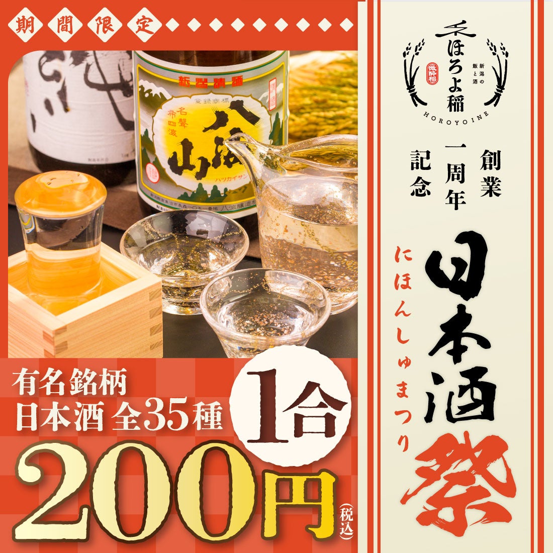 全35銘柄もの日本酒が1合200円!『新潟の飯と魚 ほろよ稲 新潟駅前店』の1周年を記念して、9/3(日)よりキャンペーンを実施!