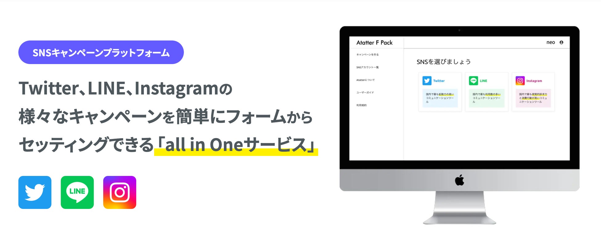 Instagram版ついに登場!誰でも簡単にフォームからインスタントウィンキャンペーンが設定できるall in Oneサービス「Atatter F Pack」で「Instagram版」がご利用可能に!