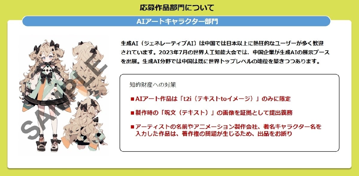 同時に、グローバルにおけるコンテンツの知的財産権に詳しい法律事務所の支援の下、AIアート部門の応募には一定のルールを設けました。私たちは、現在の日本のAIアートの風潮に対し一石を投じ、生成AI時代のコンテンツのルール形成にも貢献していきたいと考えております。