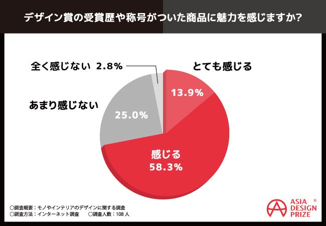 「デザイン賞の受賞歴や称号がついた商品に魅力を感じますか?」と質問したところ、