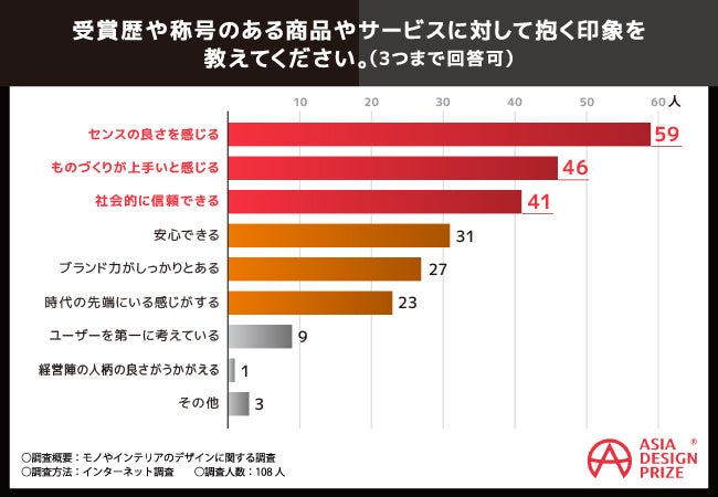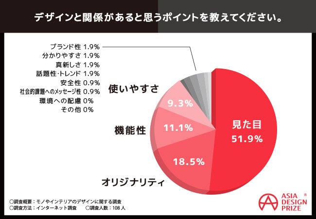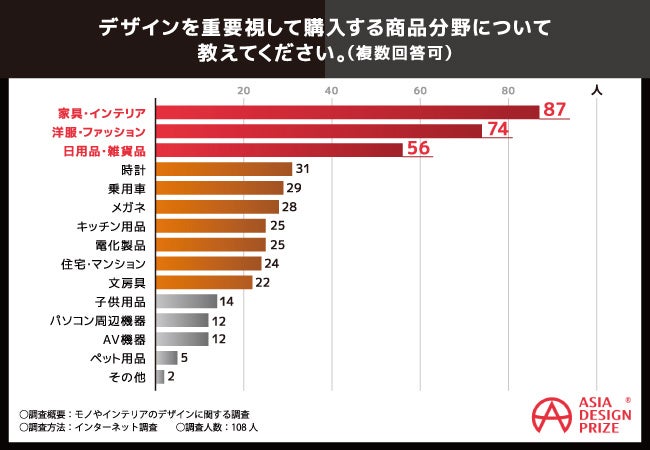 そこで今回、ASIA DESIGN PRIZEを主催するDESIGNSORI Co., Ltd.は、全国20〜60代の男女108名を対象に「モノやインテリアのデザイン」に関するアンケートを実施しました。
