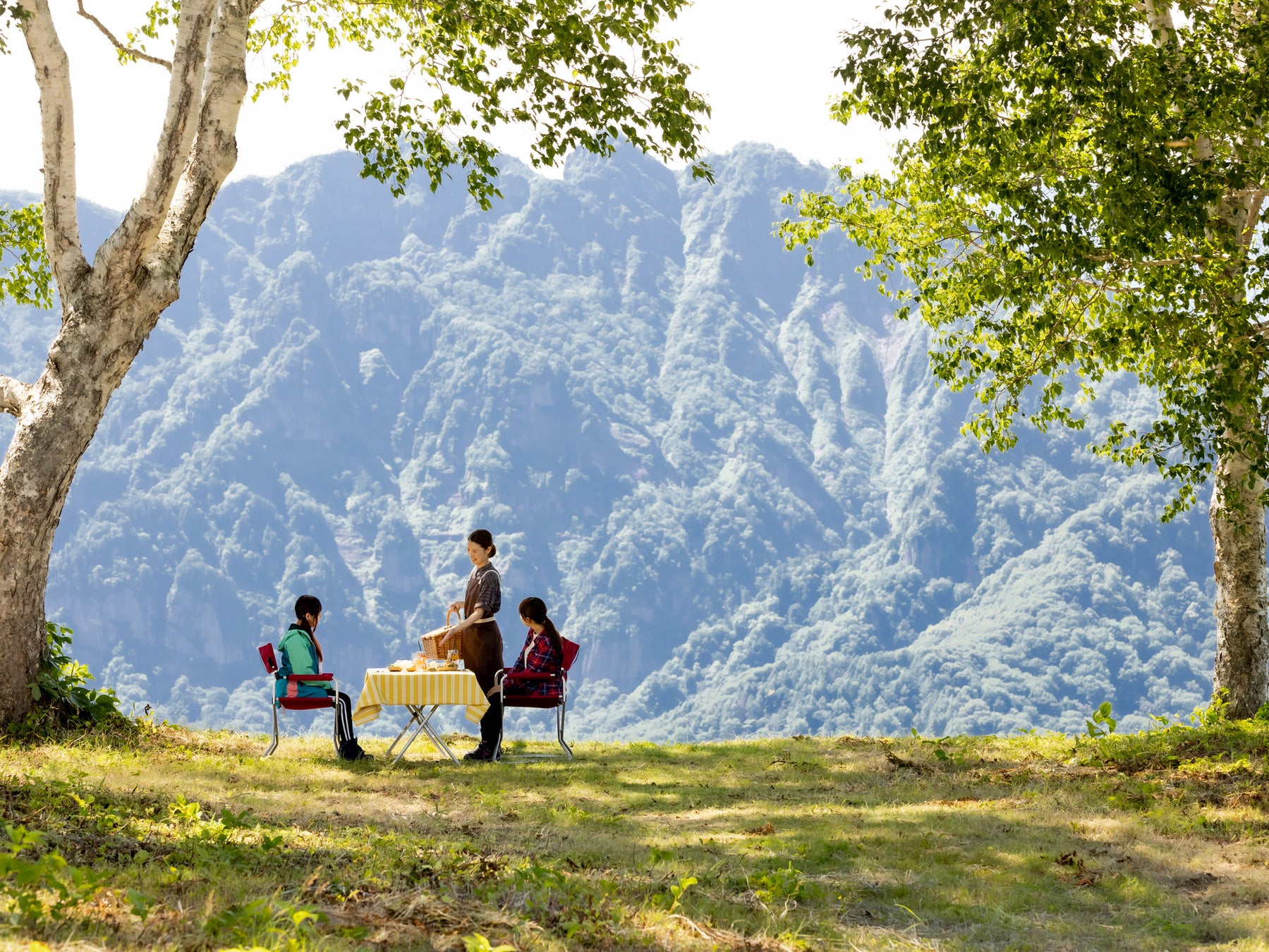 山頂にはデッキとイス、テーブルを用意しております。山麓のシャルマン戸隠にて戸隠の野菜をふんだんに使ったオリジナルランチボックスの他、地元産の食材を使った軽食の販売を行う予定です。山頂までお持ちいただき景色を楽しみながらのお食事をお召し上がりください。運行期間限定の特製ドリンクメニューもご用意しております。