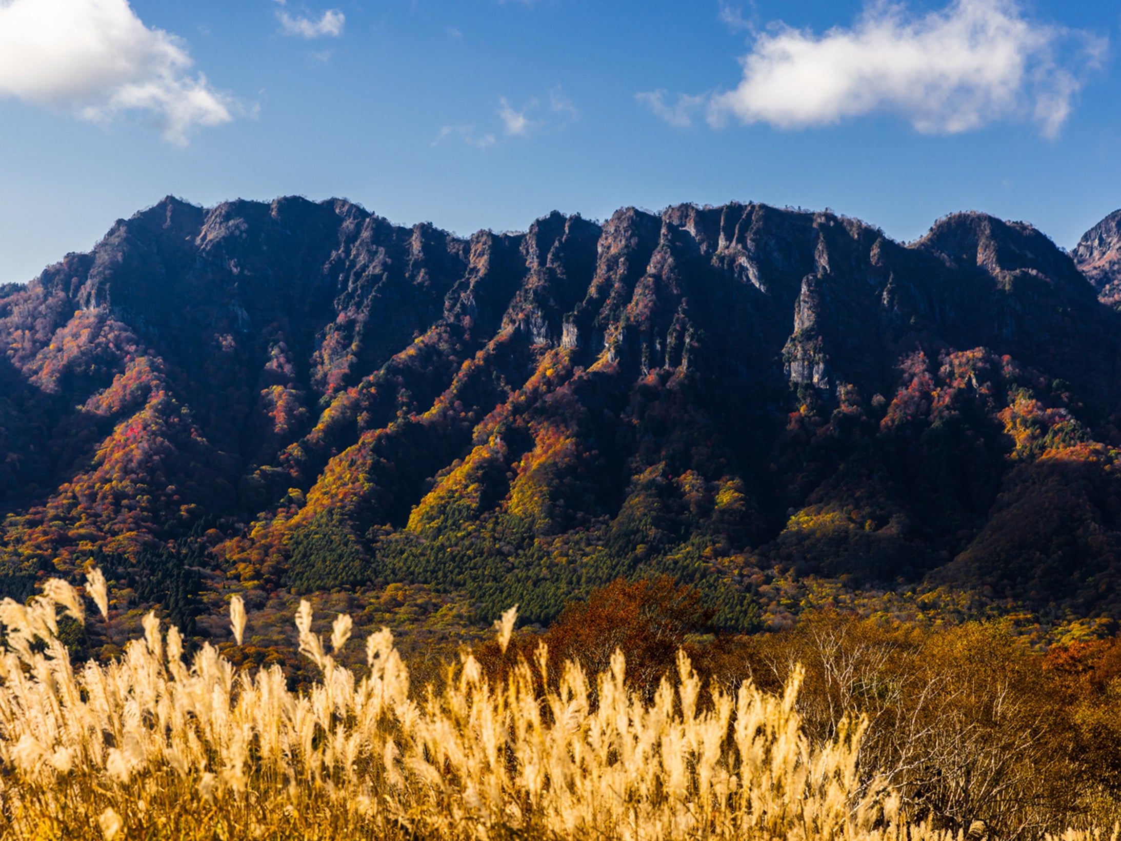 秋の紅葉と荘厳な戸隠連峰を見渡せる山頂