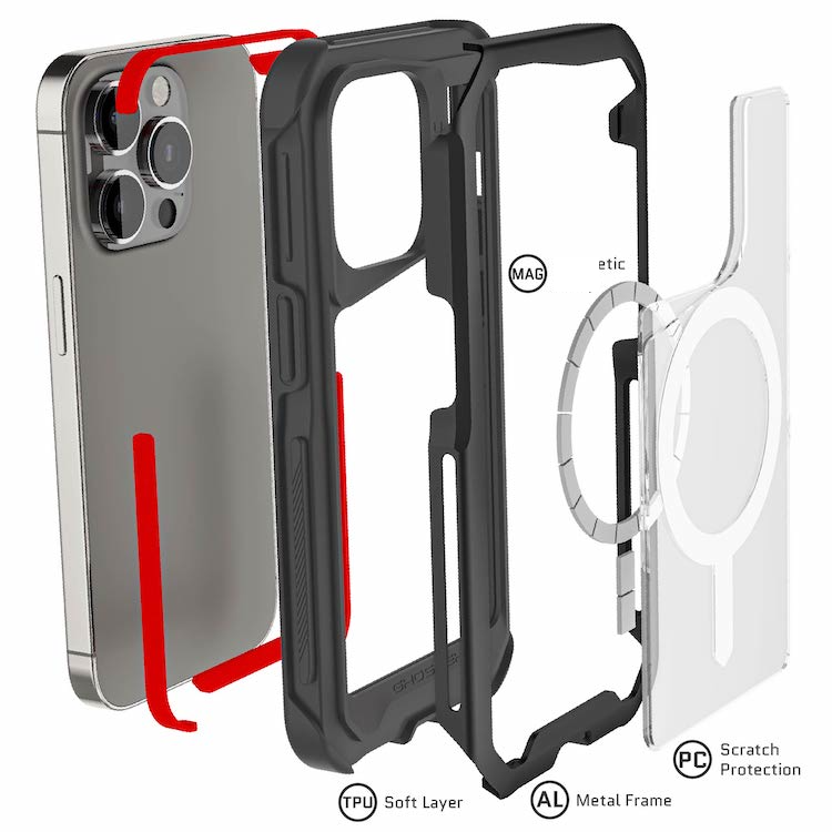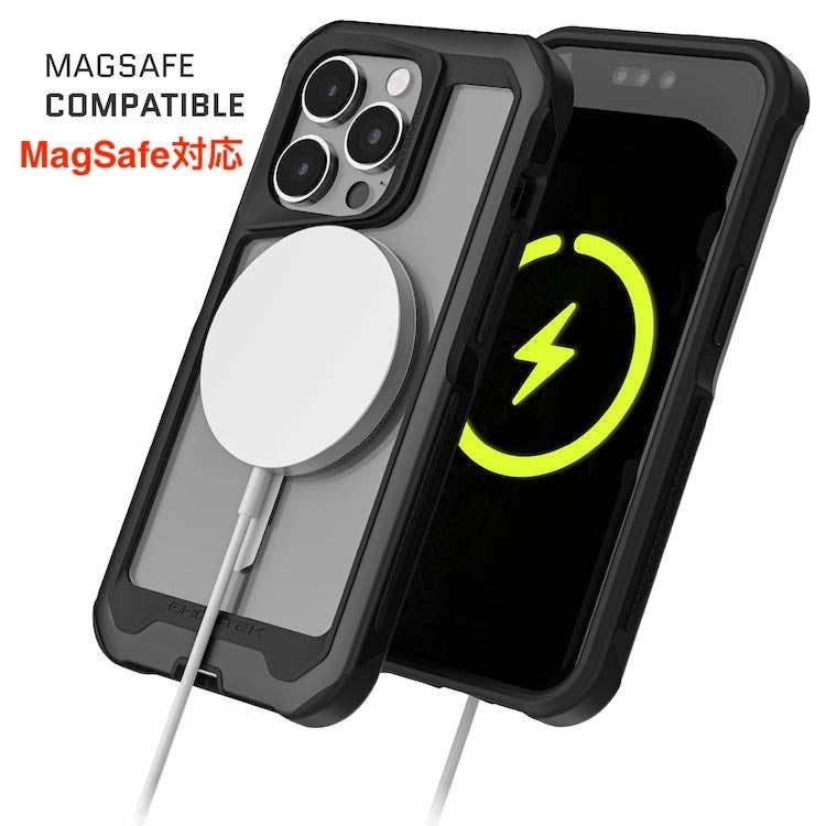 MagSafe対応で、衝撃に強い高強度のアルミフレームとクリアPCの組み合わせがスタイリッシュなタフケース