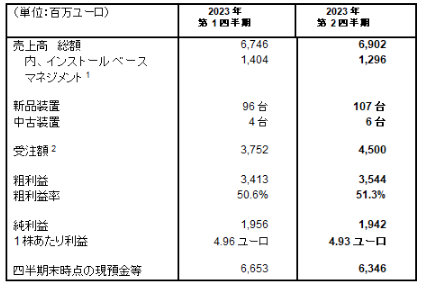 「2023 年第2四半期の売上高は69億ユーロで、予想範囲の上値近くとなり、また、粗利益率は51.3%と予想を上回る結果となりました。これは、主に、本四半期においてDUV、液侵装置の売上が増加したことに拠るものです。
