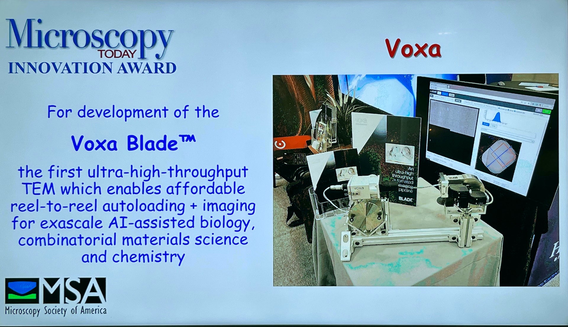 Voxaの「Blade™」が米国顕微鏡学会主催「M&M2023」でイノベーションアワードを受賞