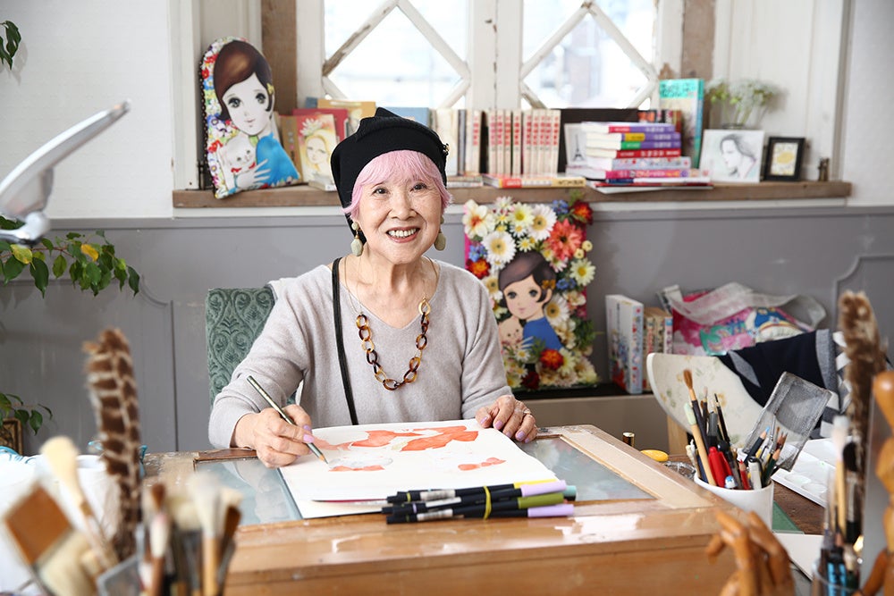 1959年にデビューし2020年に亡くなるまで、約60年間にわたり活躍。代表作には、「霧のなかの少女」「不機嫌家族」「落窪物語」「源氏物語」など。カラー原画の美しさは見る者の心を惹きつけ、親子三代に愛されている。