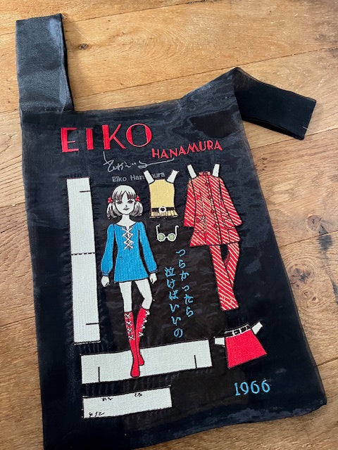 今回、花村えい子のイラストを大胆に刺繍したバッグを4種類発表します。