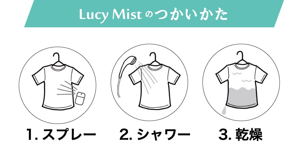 『ルーシーミスト』は“最⼩限の⽔量と洗剤”で“最⼤限の洗浄⼒”を発揮する新洗剤です。⾼い洗浄⼒を持ちながら、繊細な⾼級素材も傷めることなく、簡単、気軽に洗え、環境に配慮した使い勝⼿を実現しました。”洗濯機もいらない、⼿洗いしなくてもよい、新しい洗濯⽅法”のひとつとしてみなさまの暮らしがより豊かになるようお⼿伝いをいたします。
