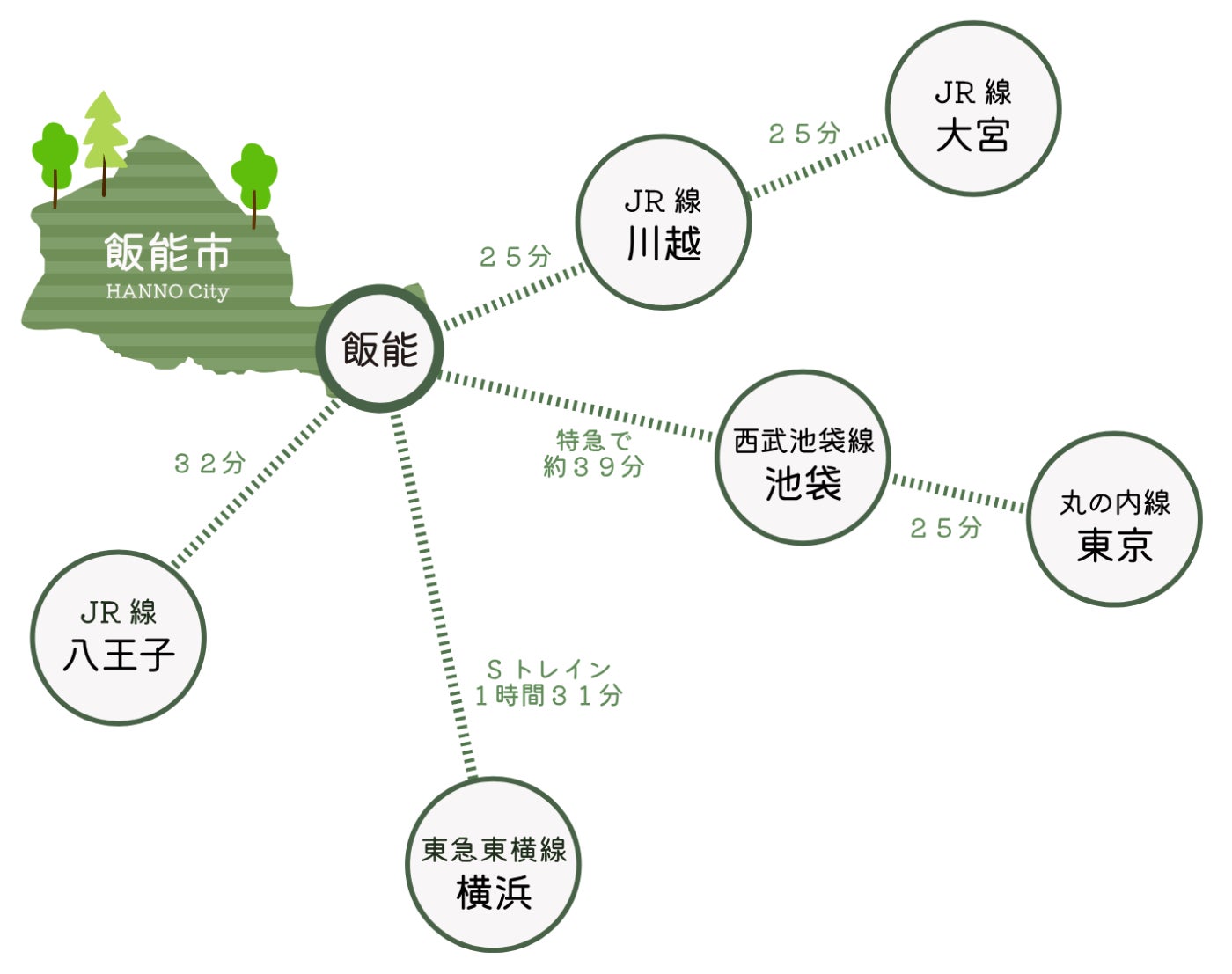 飯能市は埼玉県の南西部に位置する人口8万人ほどの都市です。西武池袋線や圏央道などの交通の便に恵まれ、都心からもわずか50分ほどでありながら、中心市街地から徒歩圏内には、清流が美しい飯能河原や、天覧山などの自然に恵まれています。そして、市の75%を森林が占めていることから、森林と人とのより豊かな関係を築きつつ、自然と都市機能とが調和するまちの創造する「森林文化都市」を宣言しています。