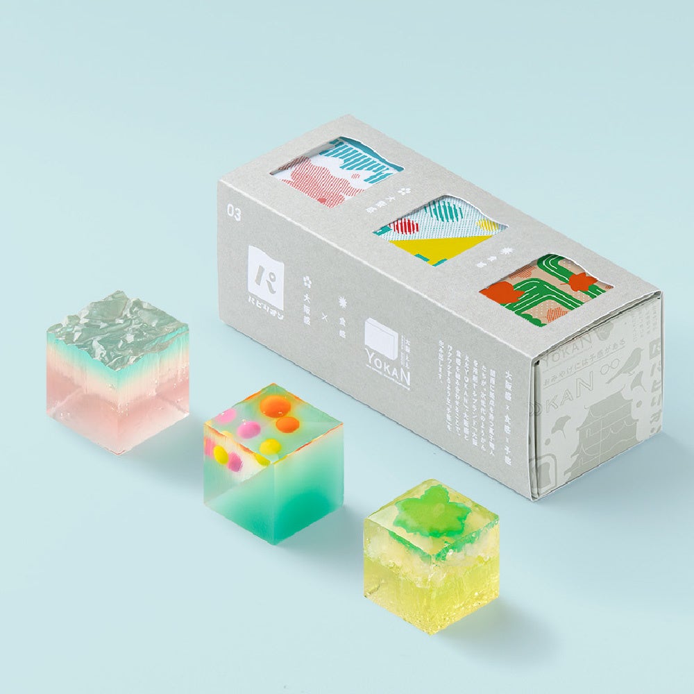 「パビリオン」とは、2025年の大阪・関西万博を見据えて菓子職人が共創し新しい大阪土産を作り出すプロジェクト「大阪ええYOKAN」の第一弾商品。大阪の魅力を表現しながら、菓子職人としての技術を見せ合う様を万博内の「パビリオン」に見立てた、キューブ型のひとくちようかんです。