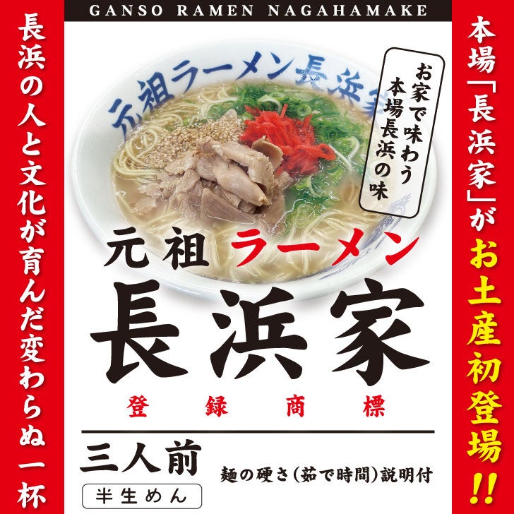 長浜家は福岡・長浜発祥「元祖長浜豚骨ラーメン」を提供する福岡で知らない人はいない名店。魚市場で働く方々のため安さとスピード命の同店は、店内椅子に座るとラーメンが出される独特スタイルで営業し今年12月に開店14年目を迎えます。地元民はもちろん国内外の観光客の来店も非常に多いため、今回のラーメンセットは初年度6万箱の販売を見込んでおります。