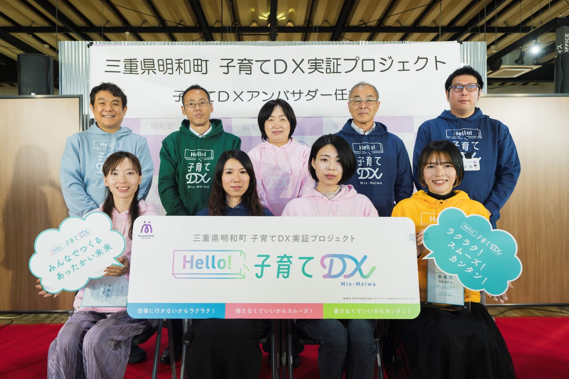 三重県明和町では、「住民の皆さんと、みんなで一緒に新たなサービス、次世代役場をつくりたい!」という想いから、「子育てDXアンバサダー」を募集。本プロジェクトの本格始動にあわせて、10月30日(水)には、三重明和インキュベーションセンターにおいて、本プロジェクトの取り組みを説明するとともに、「子育てDXアンバサダー 任命式」および、子育てDXのデモンストレーションを実施しました。