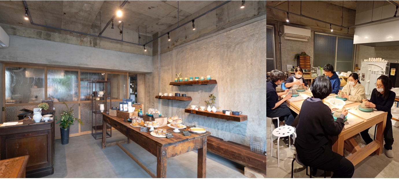 ▲うみとじかん内観、陶芸工房でのワークショップの様子
