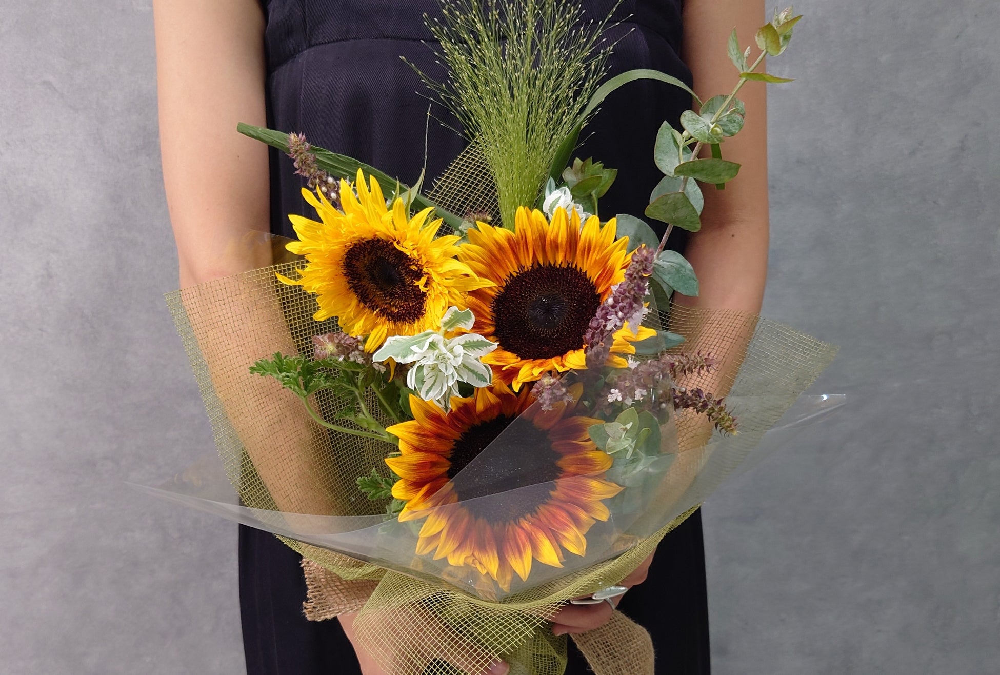 向日葵とハーブのブーケ