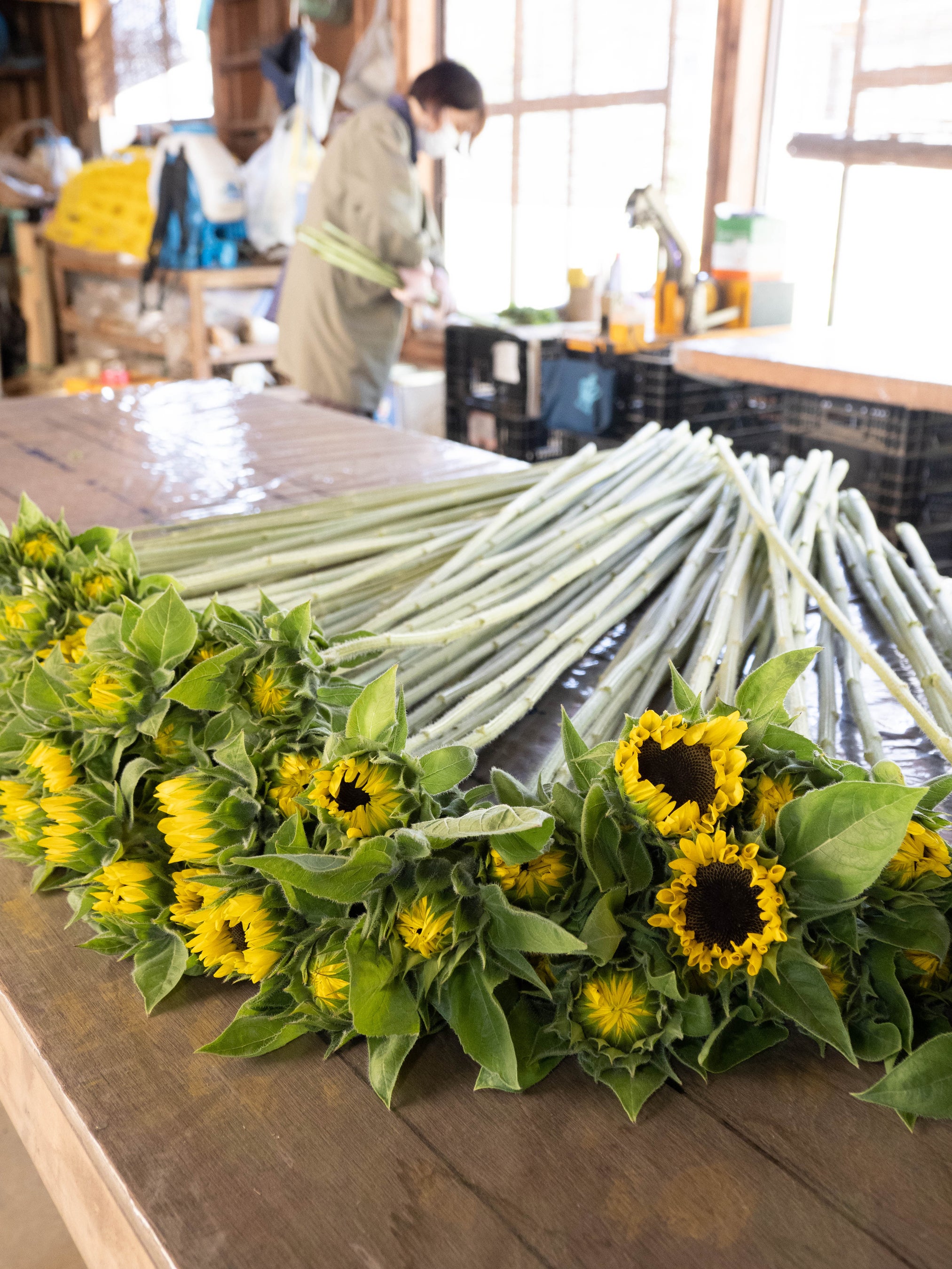 今回、新幹線でやってくるヒマワリの産地は「JA新潟かがやき」の黒埼地区。JA新潟かがやきの花は、大きさやつぼみの開き具合が出荷の箱ごとに揃えられており、生花店で取り扱いやすい=お客様にもご紹介しやすい形でやってきます。また、JA内で徹底して選別・荷造り方法を統一、新規栽培者に向けた研修会を開催して、切り花産地の担い手確保、選ばれる産地であり続ける取り組みをすすめています。