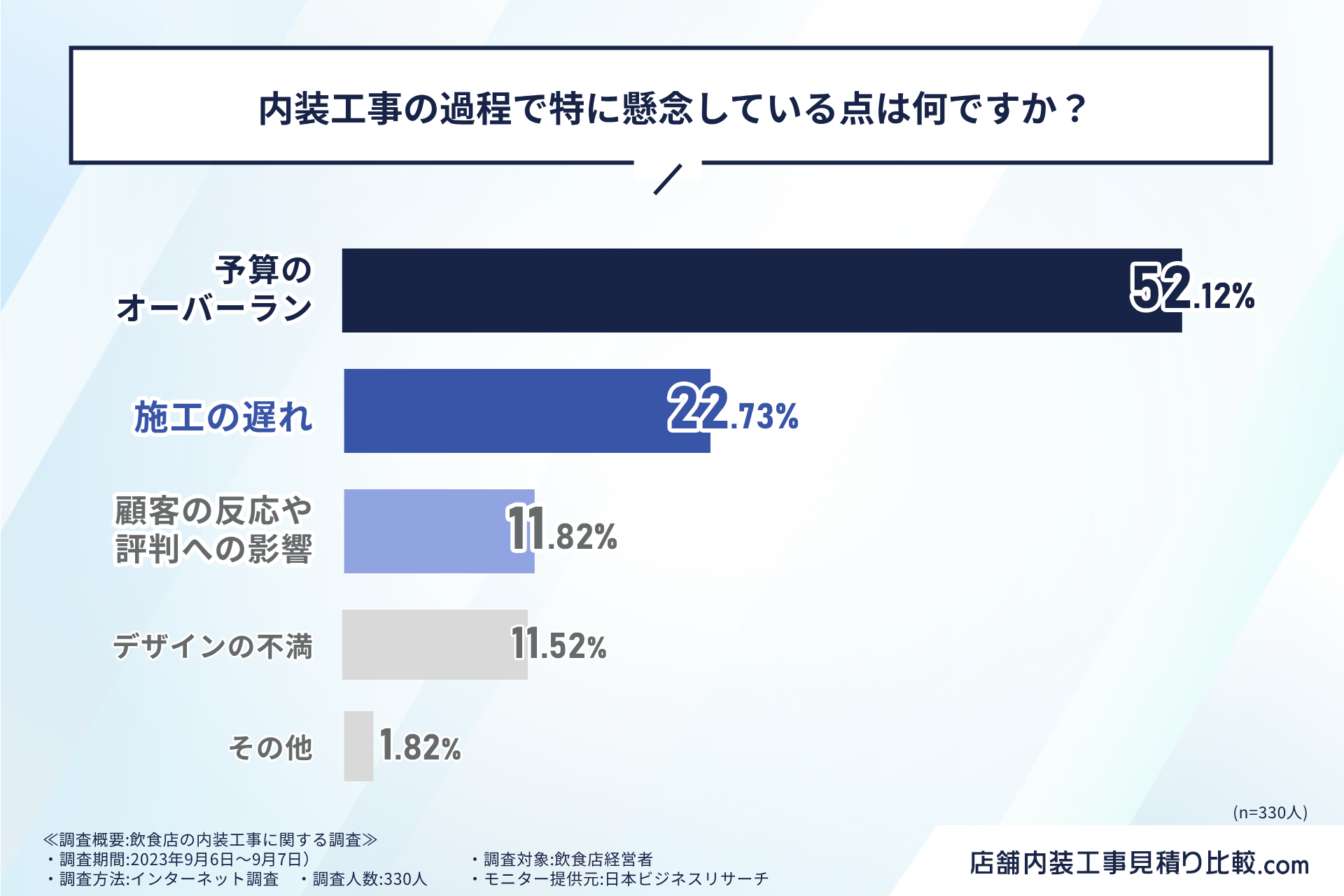 飲食店経営者の中で、最も多くの方が懸念している点は予算のオーバーランです。