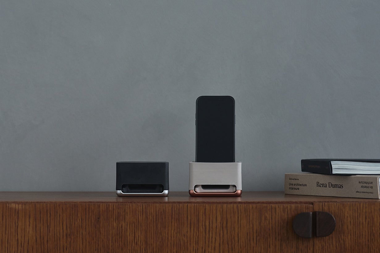 天然鉱石と樹脂を掛け合わせた独自の素材が生み出す音は、まるで洞窟の中にいるかのような深みある自然の響き。使い方はスマートフォンを上部にセットし音楽を流すだけ。