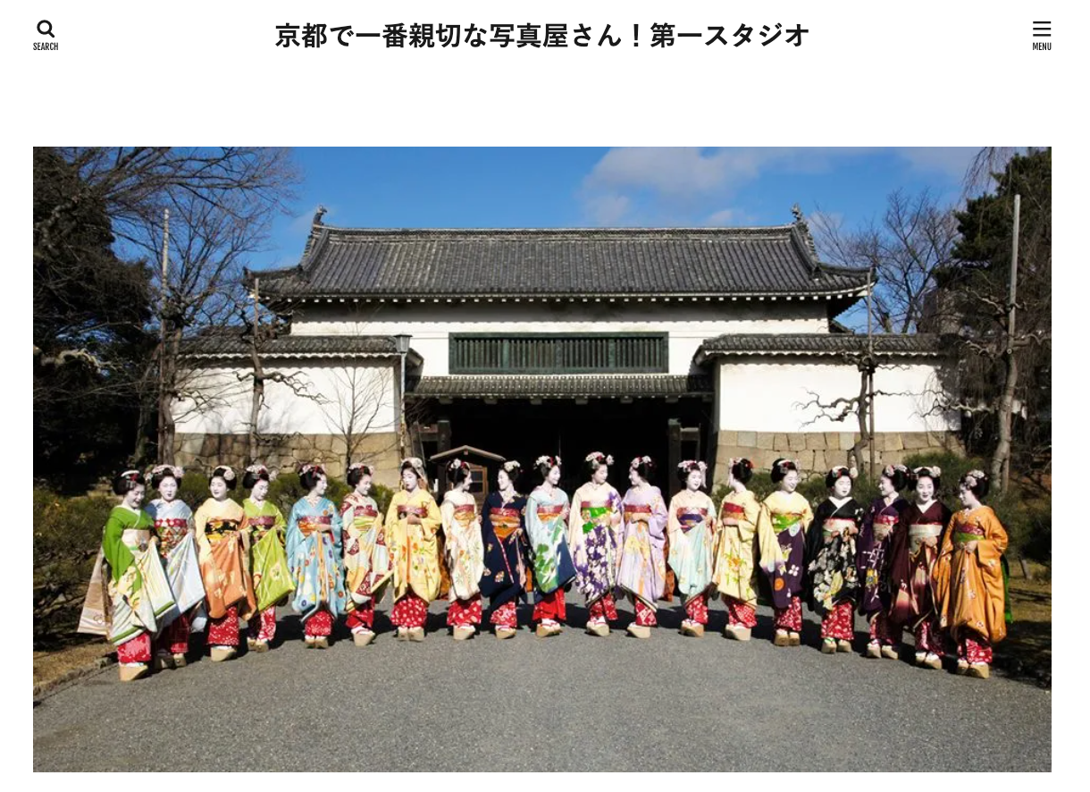 第一スタジオは第61回伊勢神宮式年遷宮専属カメラマンであり、歌舞伎役者の重鎮の故・片岡秀太郎氏、片岡愛之助氏の専属写真家で個展を4回京都府立文化博物館で開催した堀出恒夫が運営する写真スタジオです。