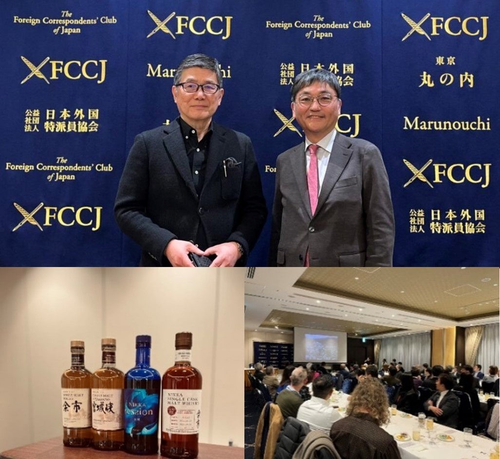 公益社団法人 日本外国特派員協会(FCCJ)とはForeign Correspondents’ Club Japanの略で、世界で最も古く、最も権威のある記者クラブのひとつ。1945年以来、世界に様々なニュースを発信し続けています。Premium Japanは、FCCJのアソシエイトメンバーコミッティに所属しており、様々な日本文化を紹介するイベントの企画・コーディネーションをしています。先日、FCCJ主催による「ジャパニーズウイスキー、竹鶴政孝の100年」として、NHKのドラマ「マッサン」で一躍有名になった竹鶴政孝氏の孫にあたる竹鶴孝太郎氏と、ニッカウヰスキーのウイスキーアンバサダー、金子太郎氏の貴重なプレゼンテーションと、4種類のウイスキーのテイスティングを開催しました。