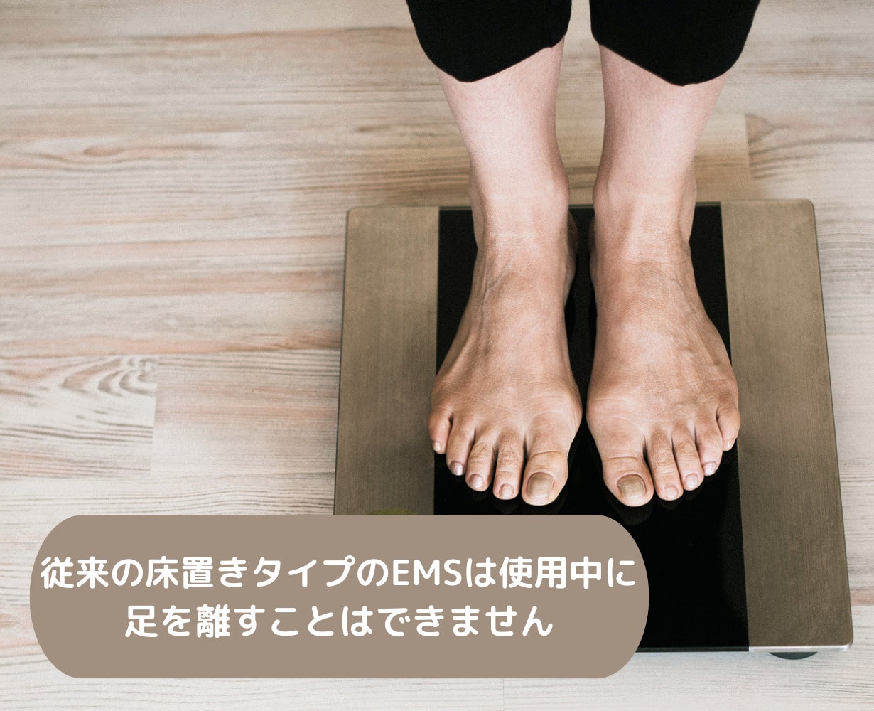 従来の足専用EMSとは異なり、足を浮かせたり動かすことが可能のため、