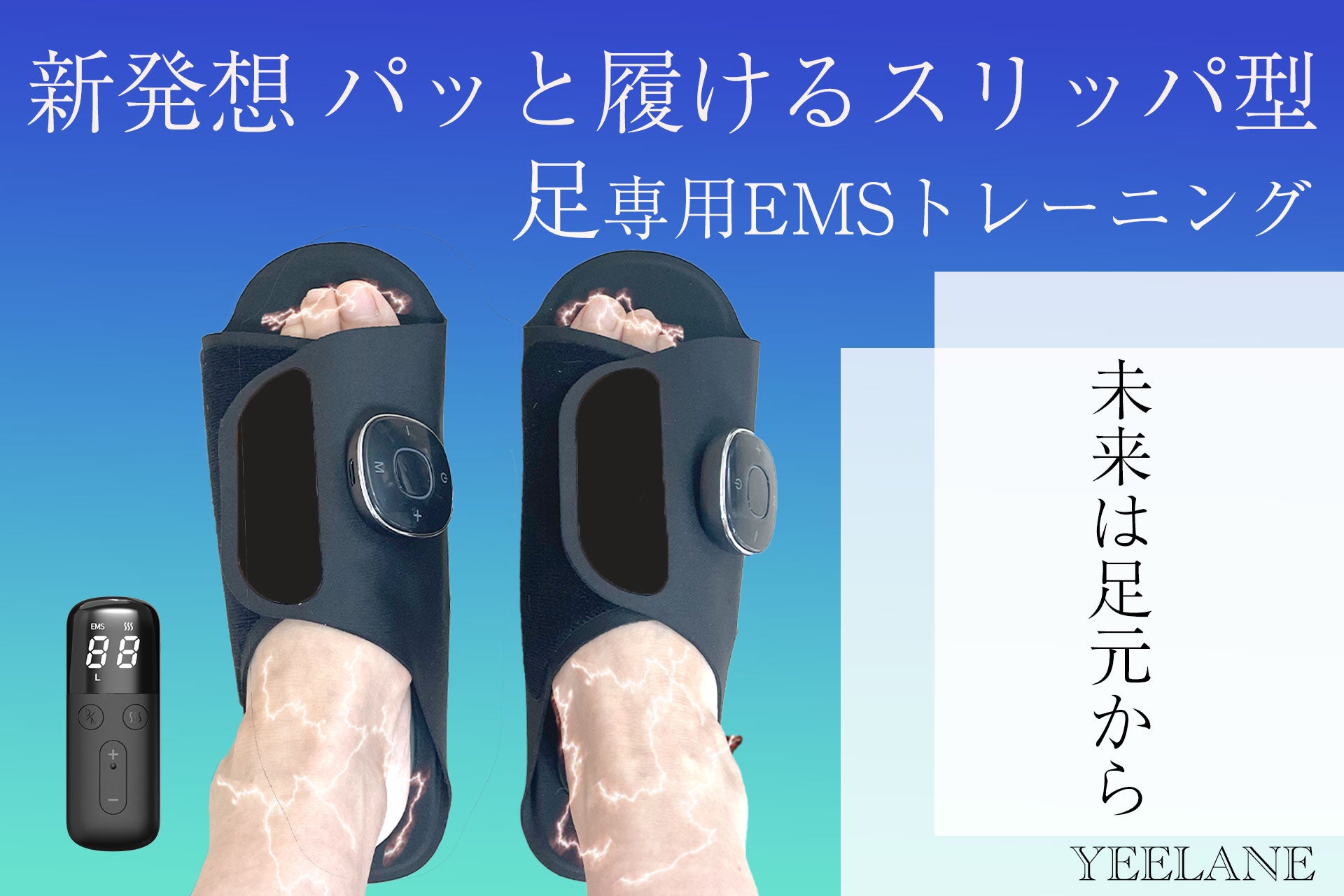 【YEELANE イーレーン】新発想!!パッと履けるスリッパ型足専用EMSトレーニング 未来は足元から!応援購入サービス「Makuake」にて5月30日(木)10時よりプロジェクトを開始いたしました。