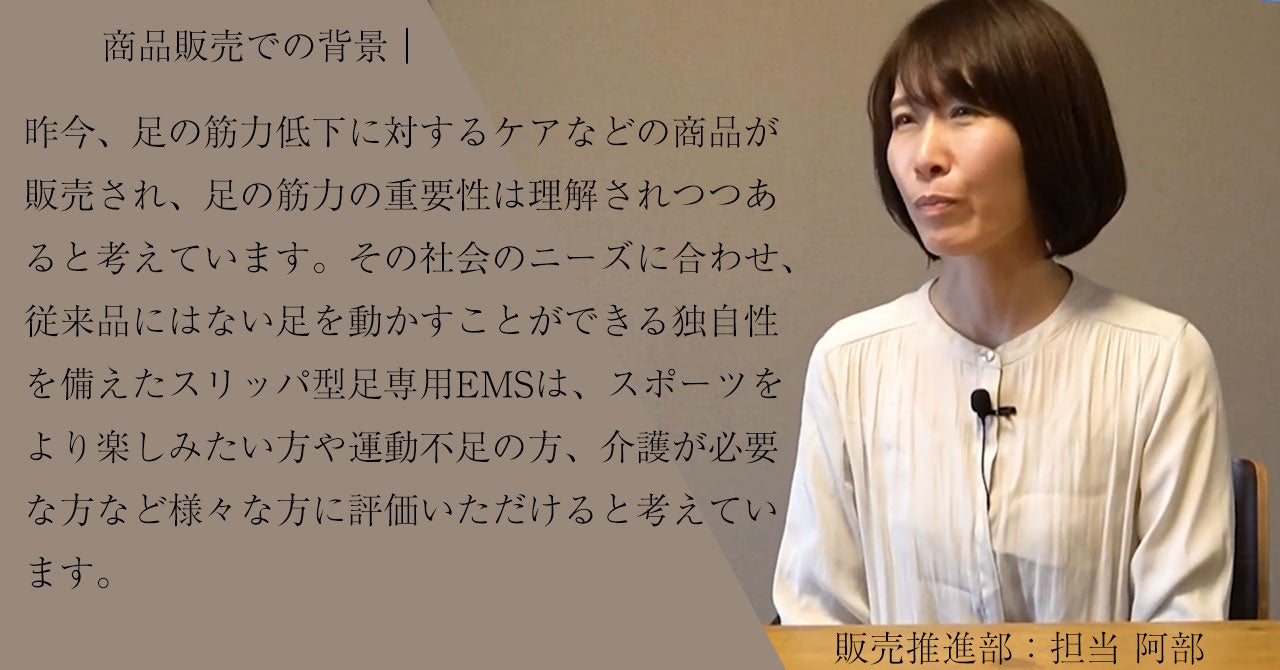 多くの足のケア商品が販売されている社会のニーズにも合わせ、また独自性も備えた『新発想!パッと履けるスリッパ型足専用EMS』は皆様の健康をサポートできると考えています。