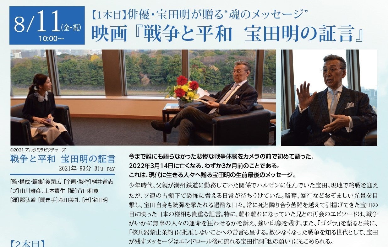 ③8月11日10時~宝田明追悼企画(映画2本セット+トークショー付き)