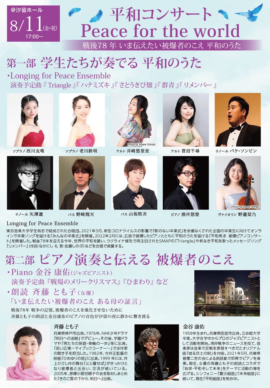 ④8月11日17時~特別企画 戦後78年平和コンサート「Peace for the world」