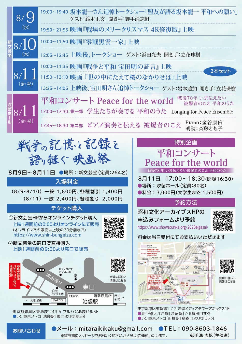 平和コンサート@汐留ホール 昭和文化アーカイブスHPより予約 https://www.showabunka.org/2023eigasai/