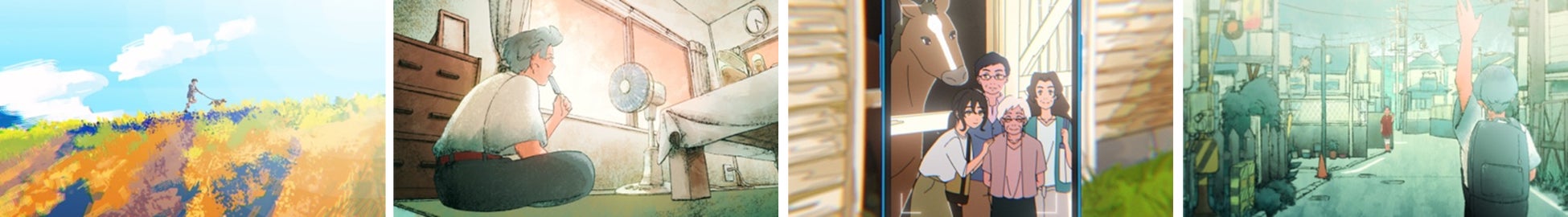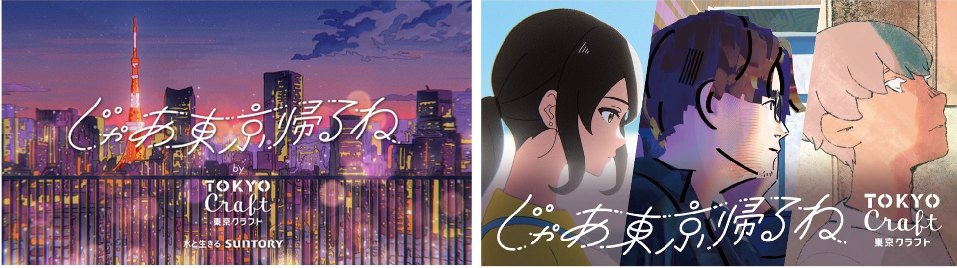 「じゃあ東京帰るね by 東京クラフト」では、映像作家の崎村宙央さんを中⼼に、しめさばさん、めいにーさん、ほ〜こうさん、けろさん、APO+さん、⻑江春芳さん、fussoさん、総勢8名のクリエイターが動画の制作を⼿掛け、上京をテーマに故郷から東京までの帰り道で心が揺れ動く3⼈の若者の様⼦を描きました。3⼈の登場⼈物は、⼈気声優の三上枝織さん、岩崎諒太さん、⾚⽻根健治さんが演じ、「東京帰るね」と⾔ってしまった⾃分に違和感を覚えつつも、⼤切な故郷の⾵景や思い出を思い出しながら、東京での⽣活を頑張って行く様⼦を表現したアニメーション作品です。