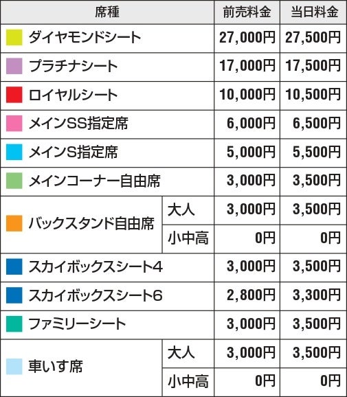 ※スカイボックスシート、ファミリーシートについては下記URLをご参照ください。