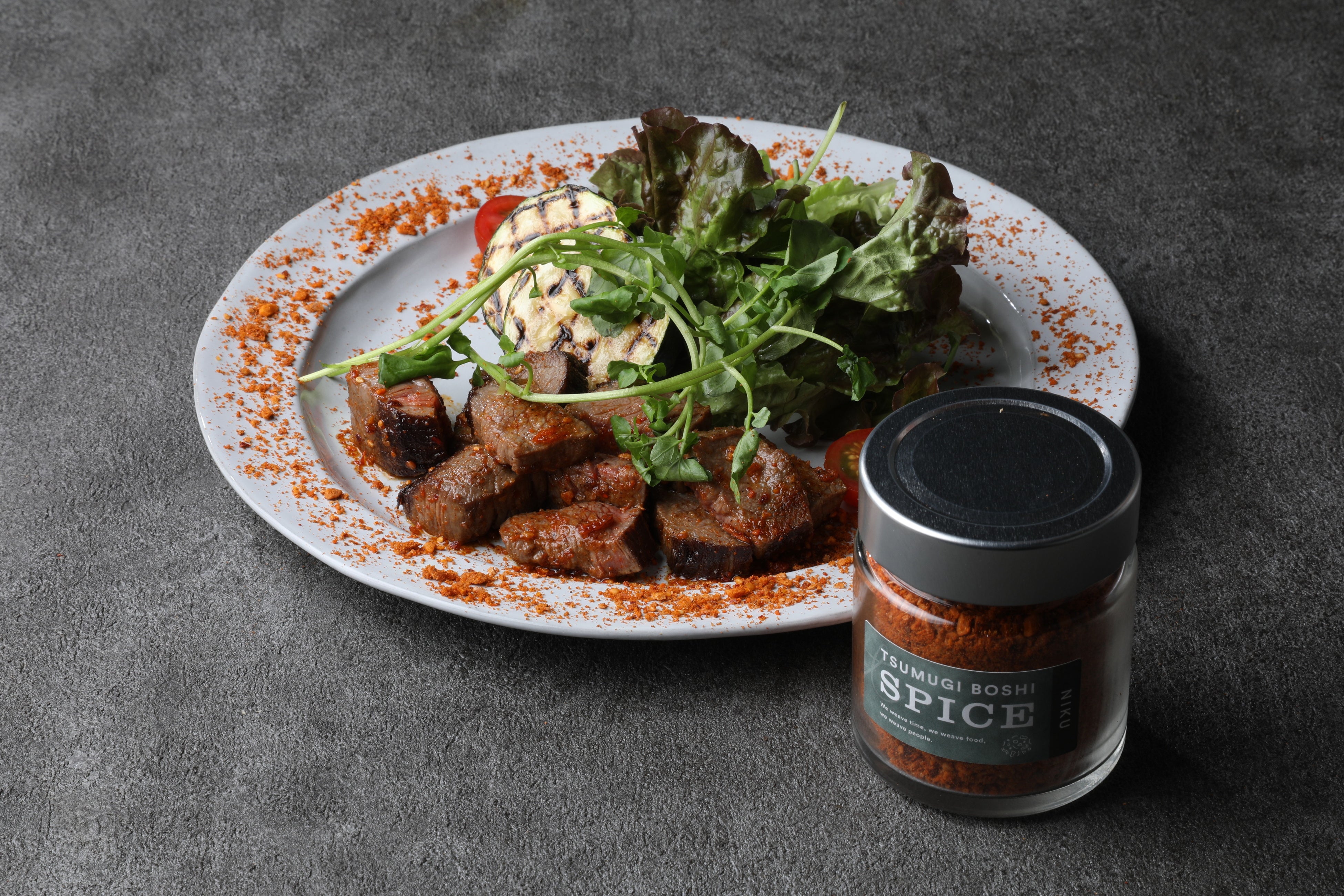 厚切り肉や塊肉を豪快に焼いてあとはツムギボシスパイスNIKUをふりかけるだけ。食欲そそるスパイシーな香りとフライドオニオンナッツなどの心地よい食感がお肉をさらに上のステージへ案内してくれます。