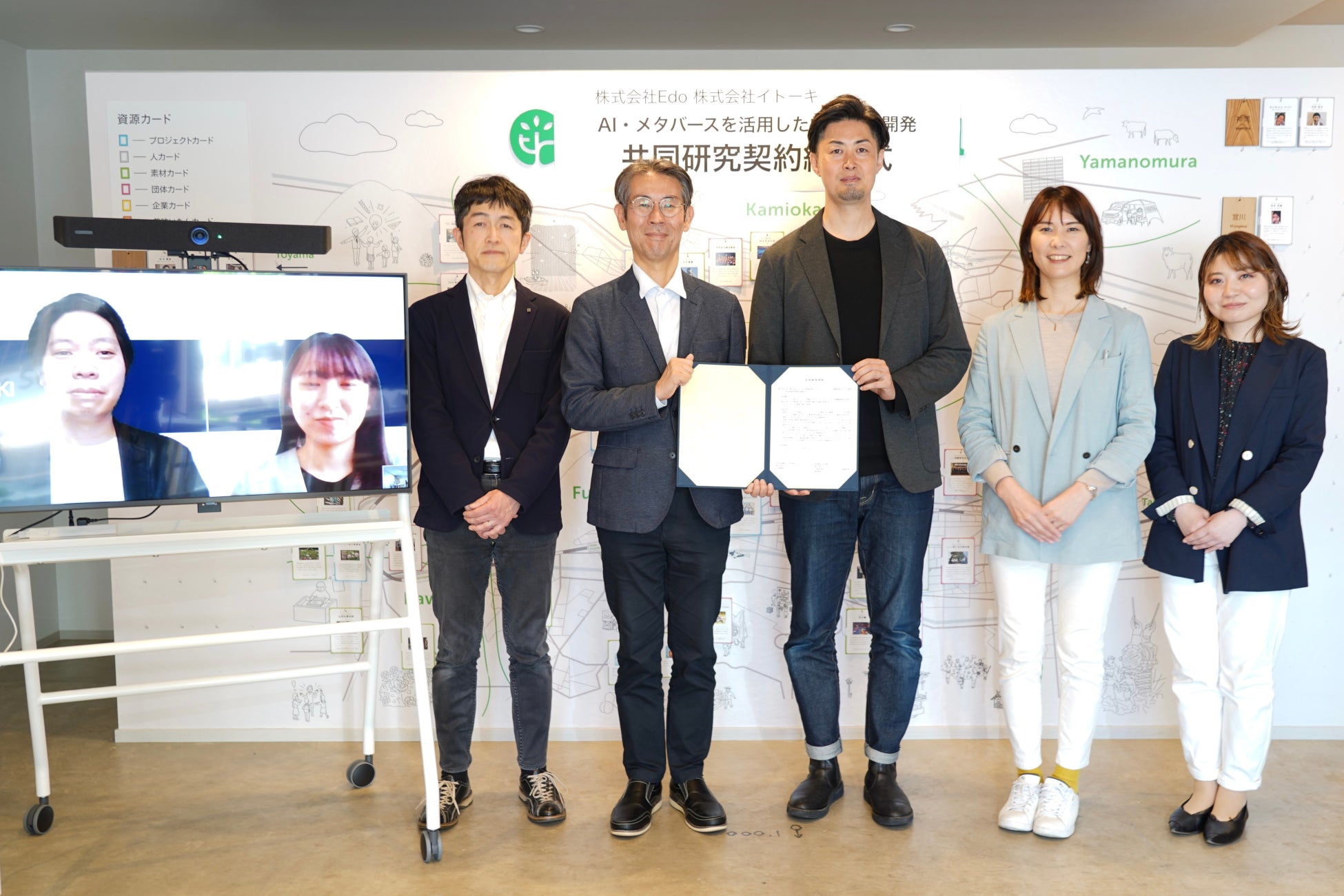 株式会社Edo(エドゥ、本社:岐阜県飛騨市、代表:関口祐太、以下Edo)は、株式会社イトーキ(本社:東京都中央区、社長:湊宏司、以下イトーキ)と地域における学習環境を充実させるため、新プロジェクト「メタバース・AI」を活用した学習環境開発プロジェクト(以下本プロジェクト)を立ち上げました。また、本プロジェクトの始動にあたり、2024年5月2日に「契約締結式」を行いました。