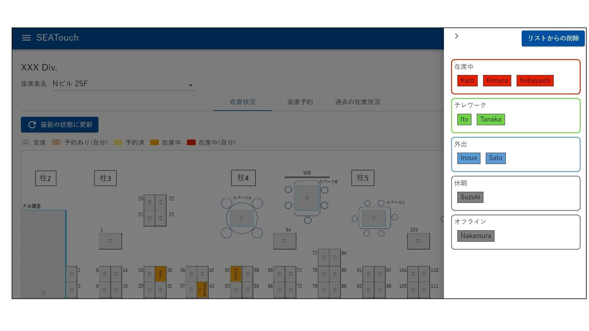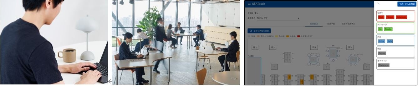 この度「SEATouch」に、勤務場所/ステータス表示ができる機能を追加し、フリーアドレスや出社、テレワークの混在するこれからのオフィス環境における社員間コミュニケーションの円滑化を一層支援します。導入企業の総務等の管理担当部門では、座席の利用率の把握により、効率的で快適なオフィス構築と運用が実現します。